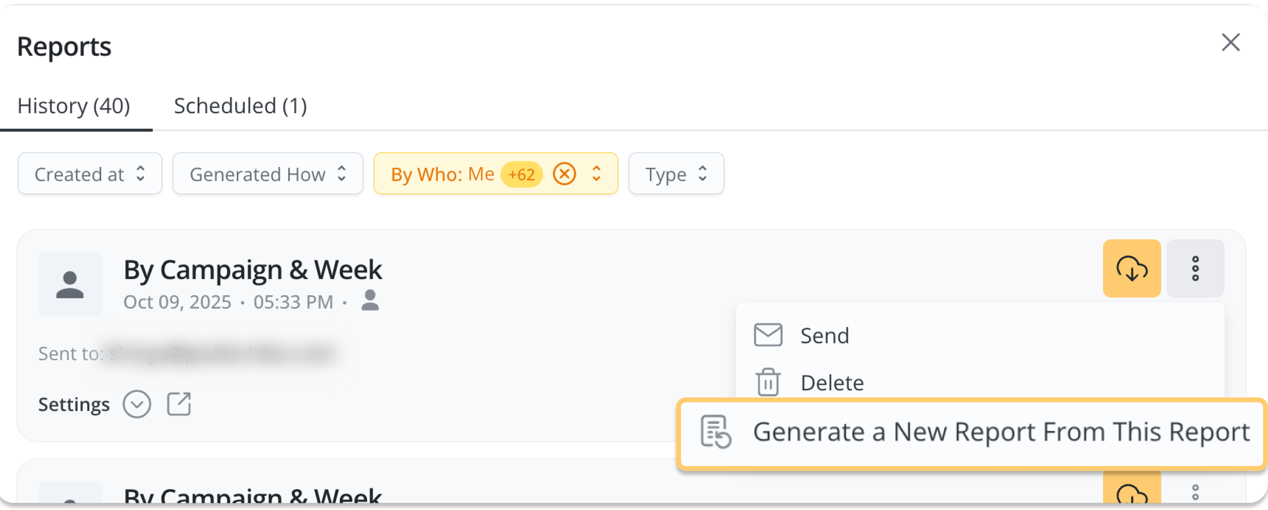 We’ve added a “Generate a New Report from This Report” button in your report history in the Overview tab. Instead of starting from scratch, simply clone an existing report and make edits to fit your requirements.