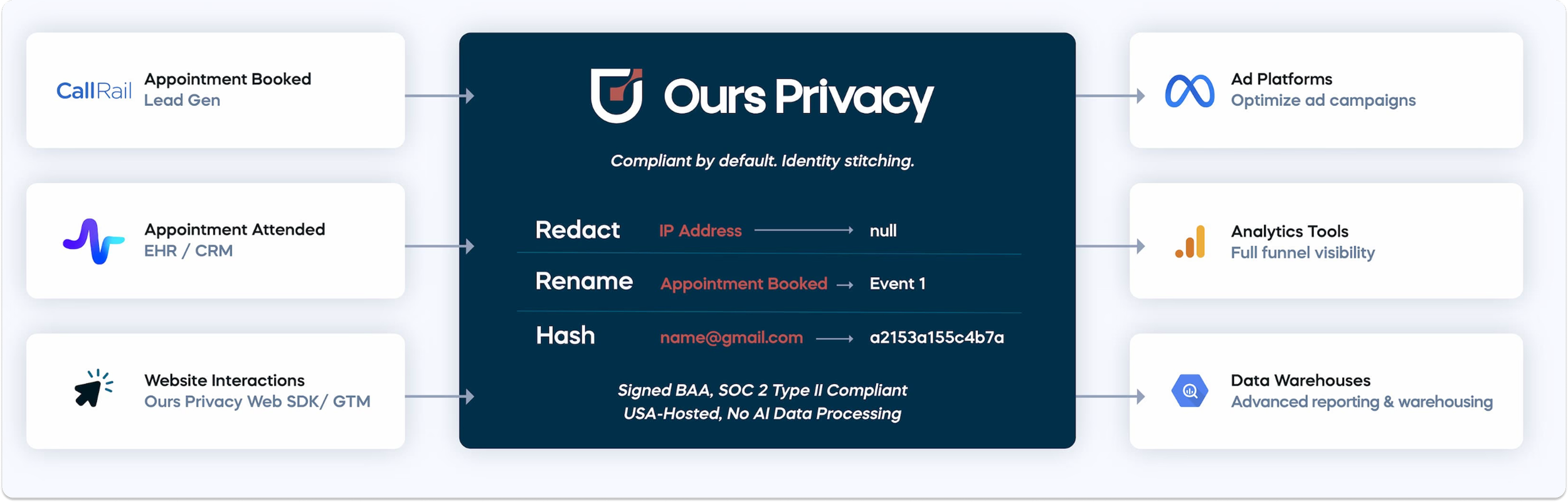 Ours Privacy was built by healthcare marketers who lived the challenges firsthand. Trusted by leading health systems and digital health companies, their HIPAA-compliant platform CDP and privacy platform enables accurate conversion tracking while protecting patient privacy.