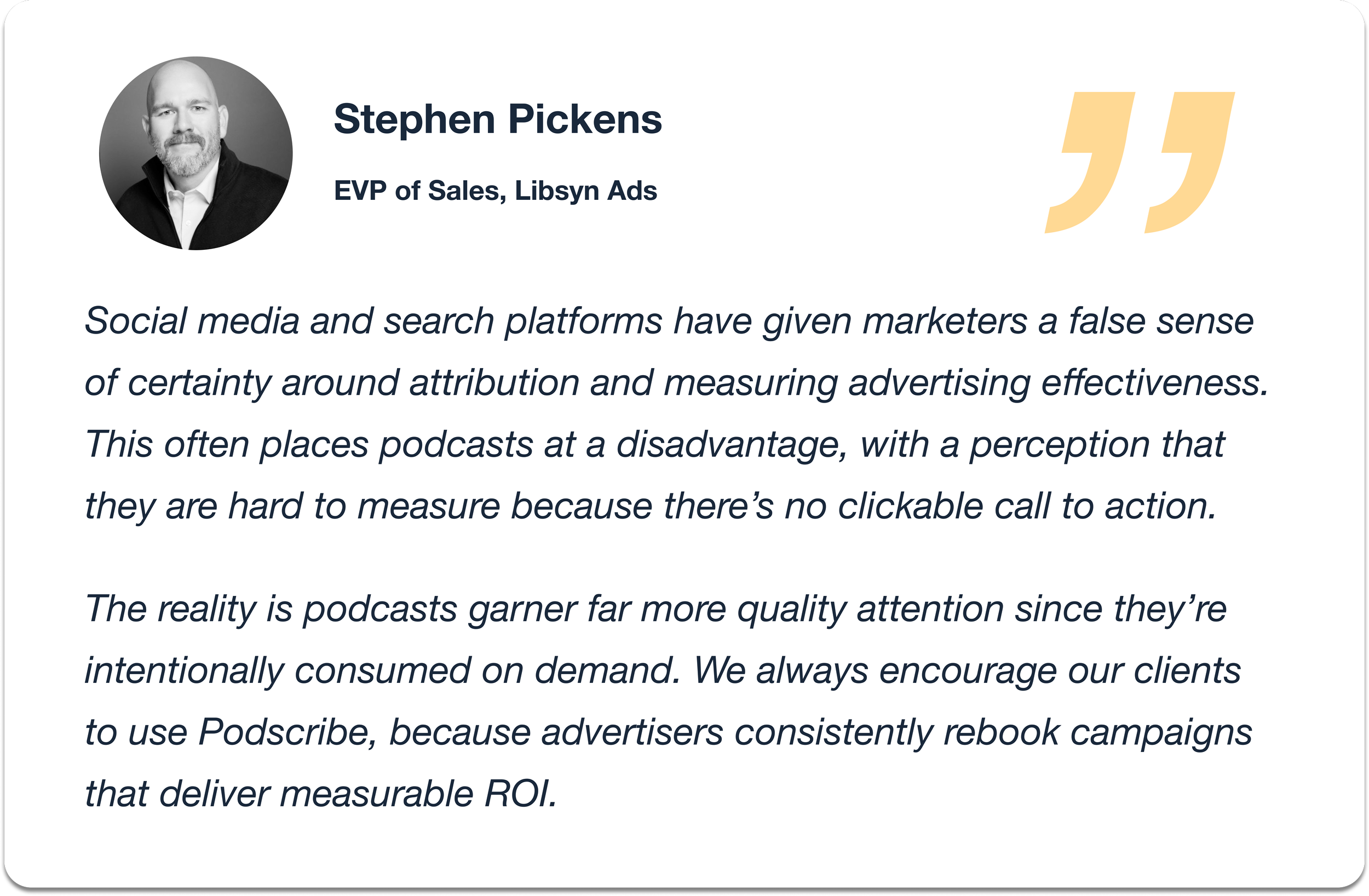 This makes podcast measurement uniquely resilient in the large privacy shift we are observing in the digital marketing ecosystem.