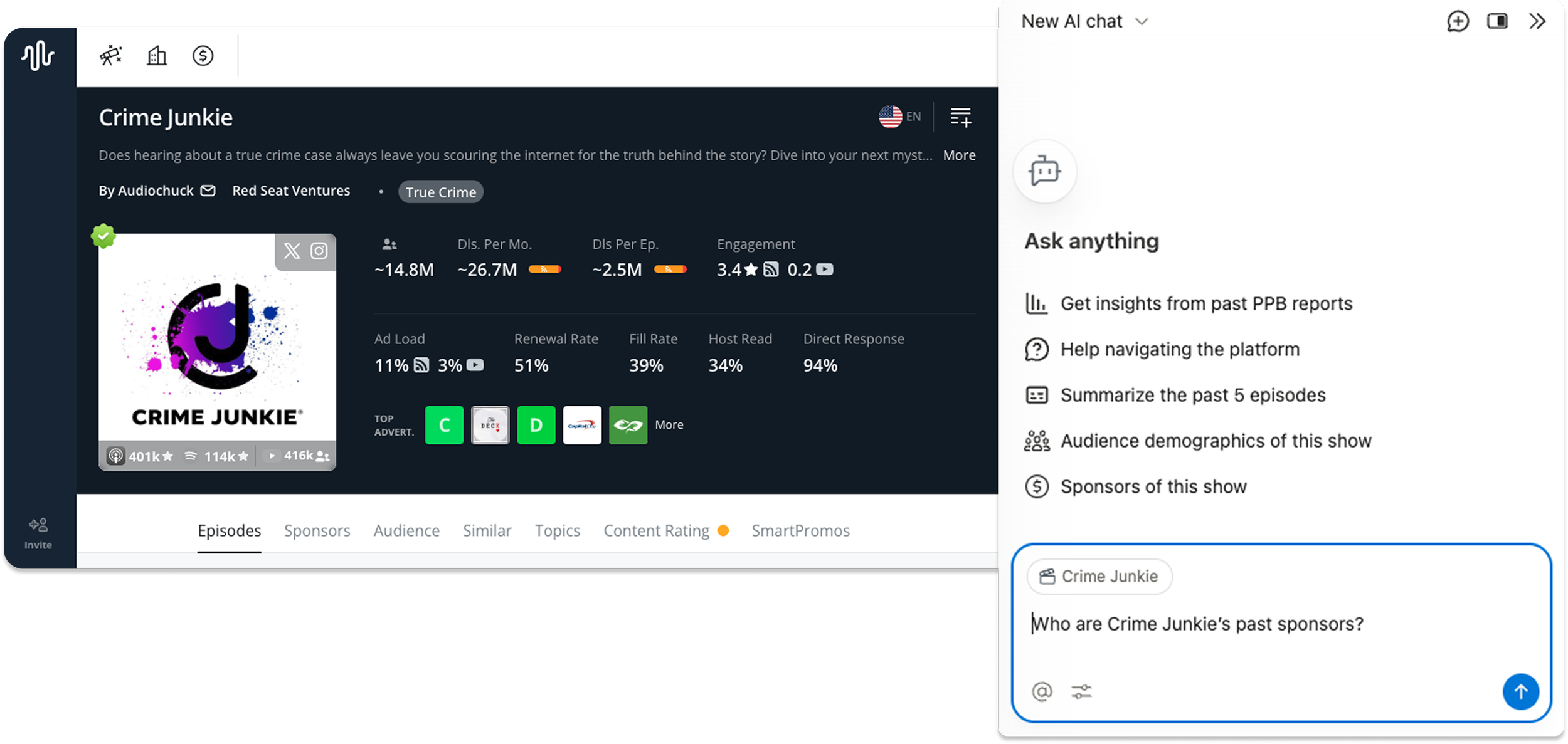 Talk to any show to learn about its audience data, content, advertisers