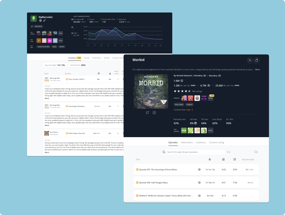 Expansive Show Database: With access to Podscribe's extensive database of over 25,000 shows Füm was given a broad spectrum of potential advertising venues. Each listing came with detailed demographics and performance insights, helping Füm make informed decisions about where to buy next.