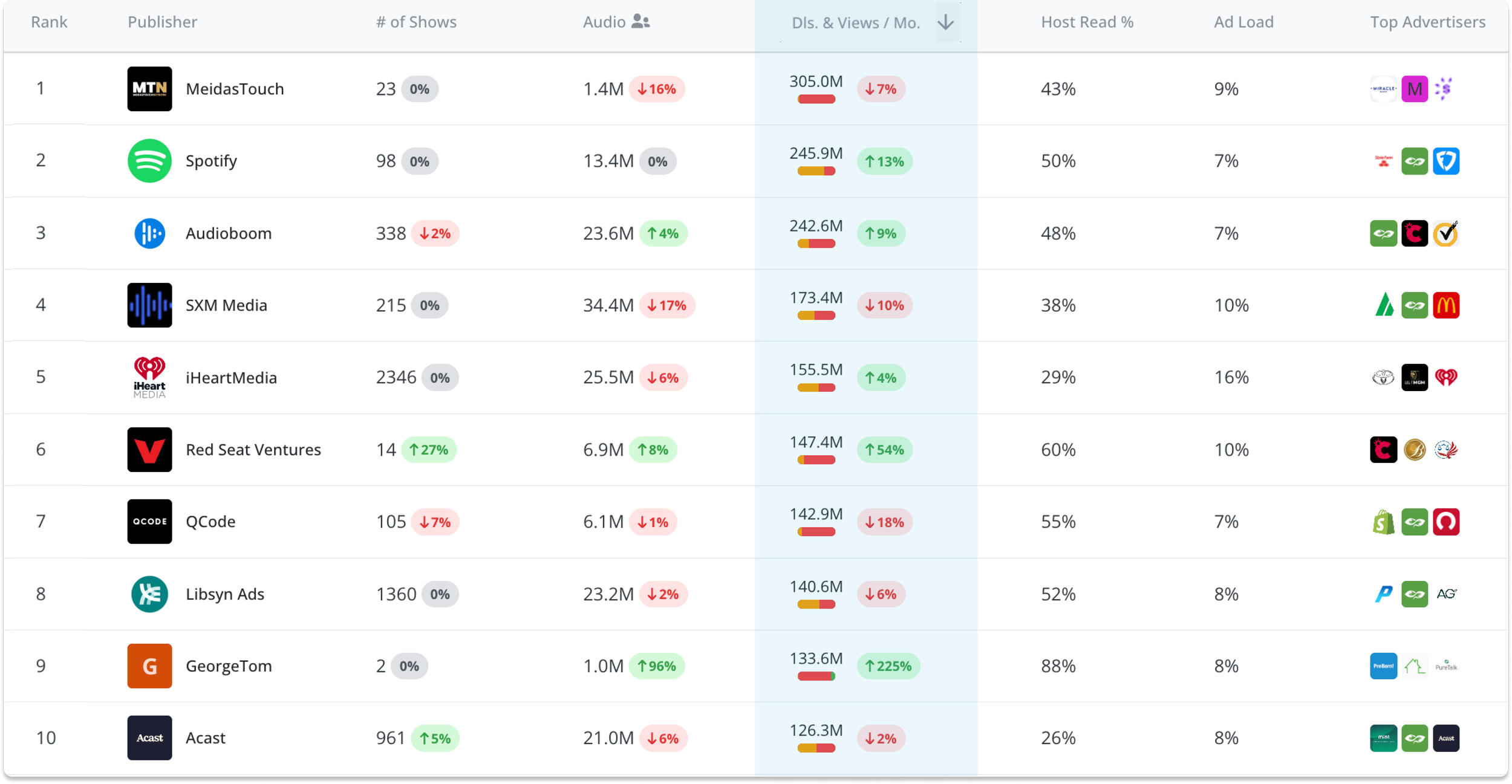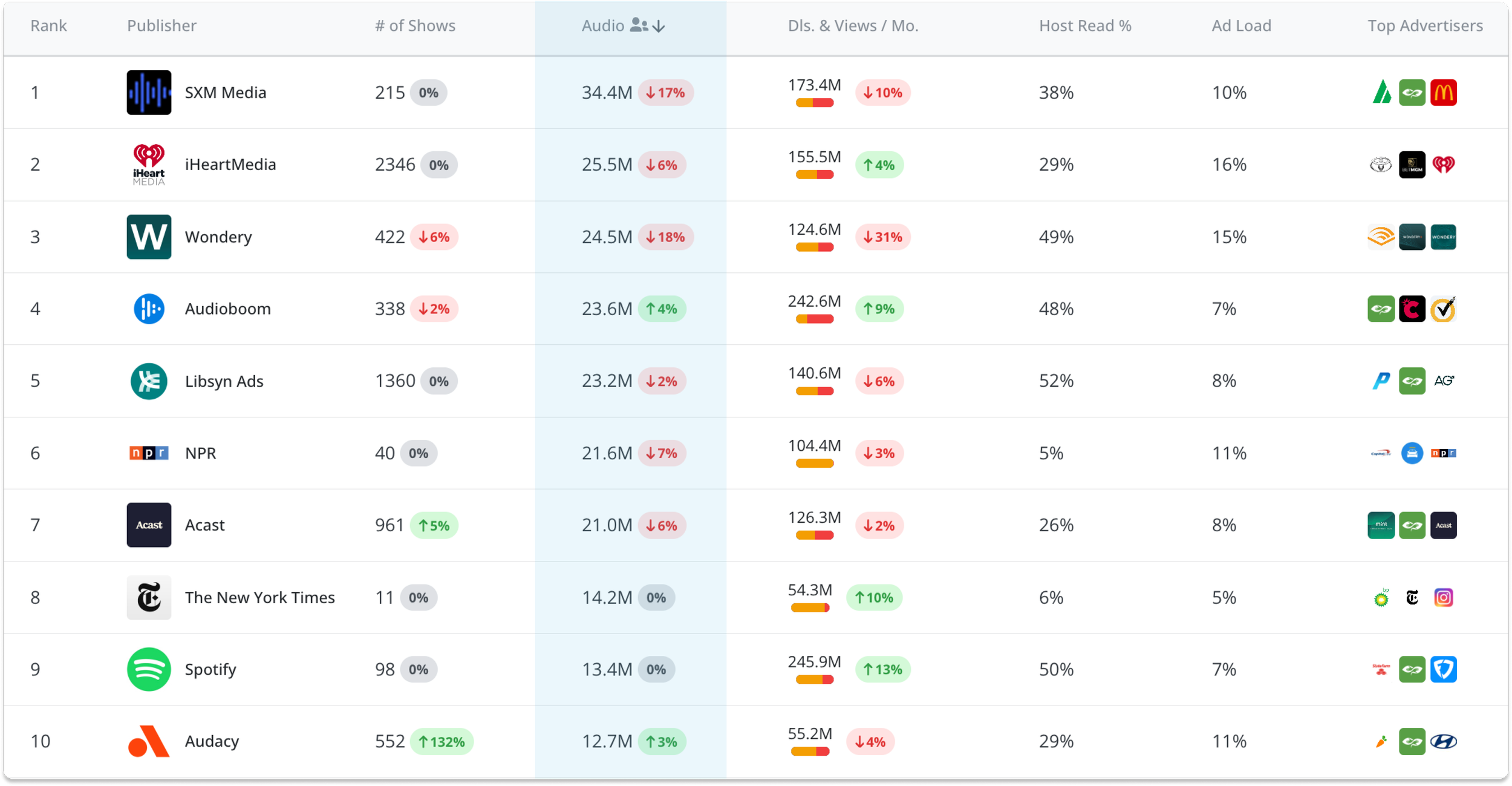 Top Publishers by Audio Reach